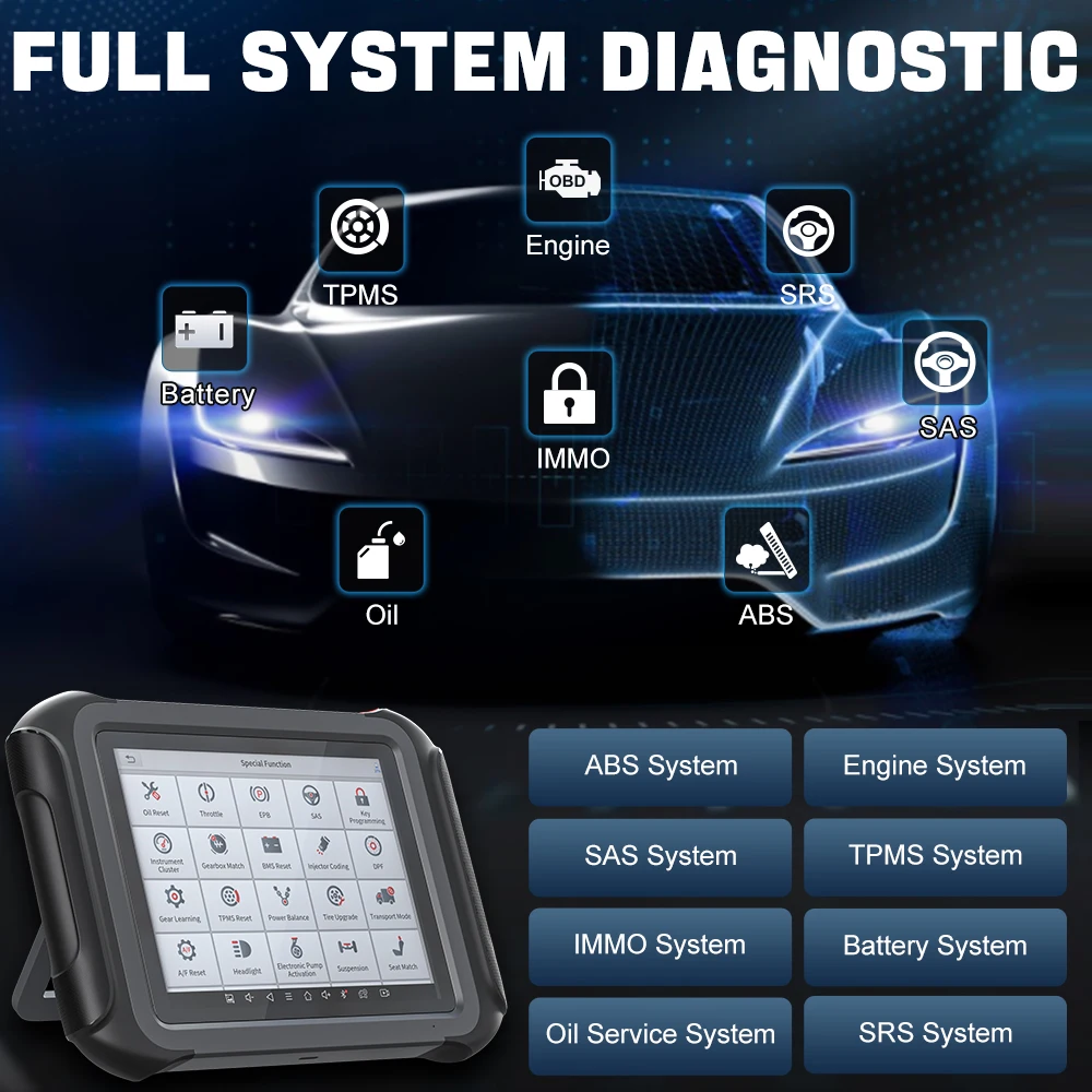 XTOOL D9 Pro предназначен для механики и мастерской, гаражи. Вместе с 42 + техническое обслуживание функции, такие как сброс масла, EPB, SAS, регулировка, DPF регенерации, сброс блок управления, моточехол для защиты от дождя, датчик освещенности, A/C заново, батарея HV, VGT заново, VIN записи и т. д. Примечание: функциями Службы не работает на всех транспортных средств.