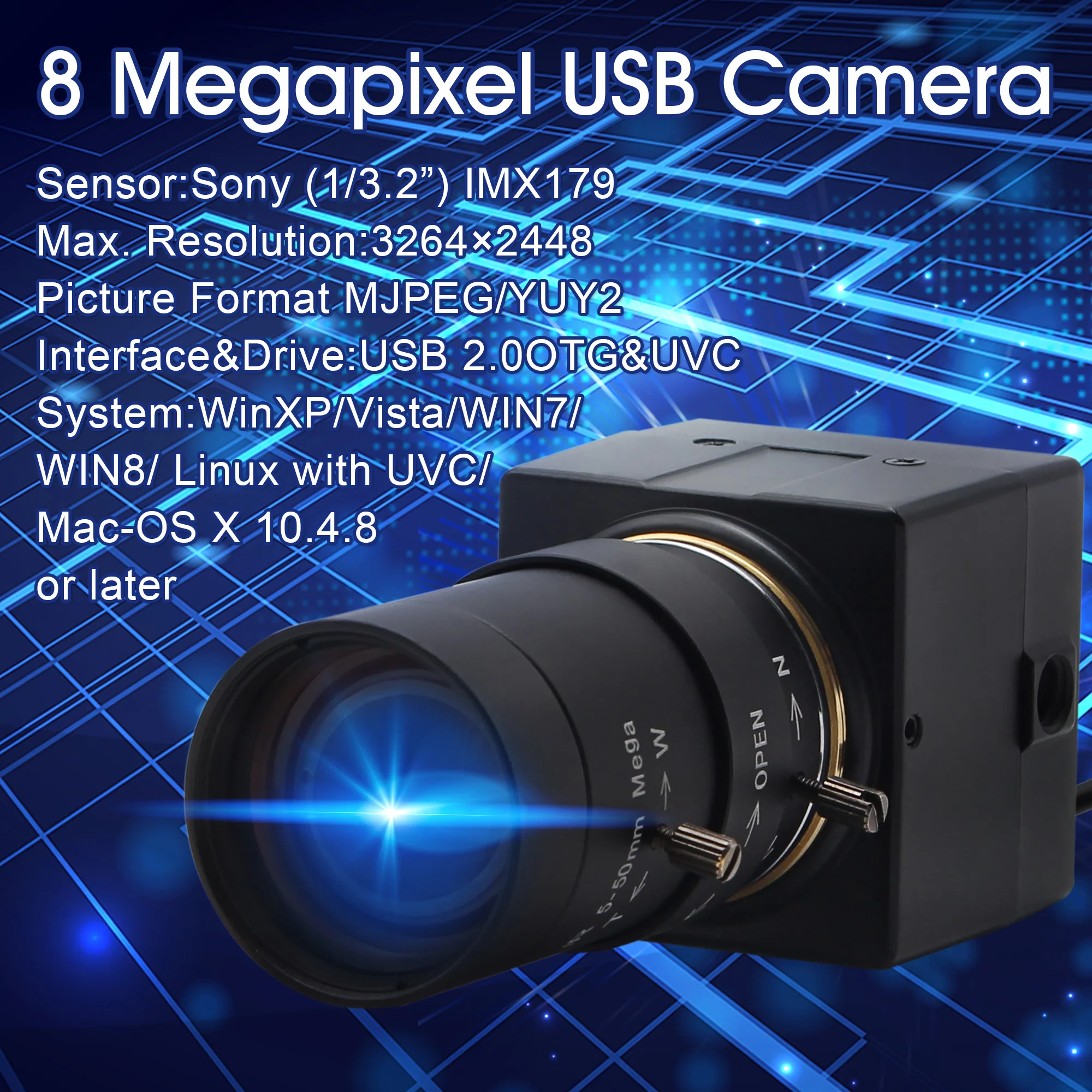 8MP PC веб-камера 3264X2448 Sony IMX179 ручной фокус CS объектив видео веб-камера для Windows Linux Mac компьютер ПК настольный ноутбук