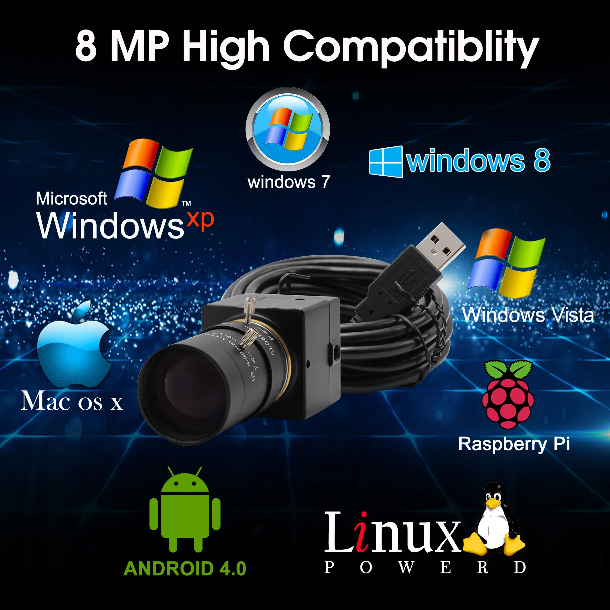 1) 1 шт. 8mp usb веб-камера с 2,8-12/5-50/6-60 мм ручной варифокальный объектив с креплением CS Mount, 4/6/8 мм объектив с ручной фокусировкой