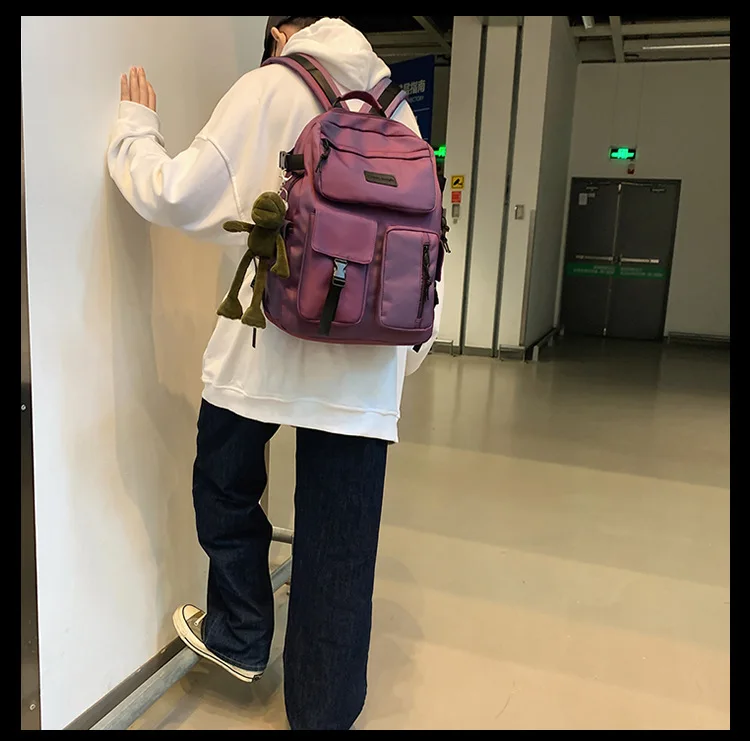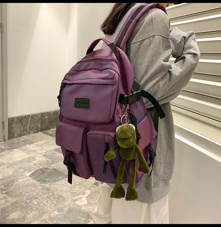 Модный Блестящий Школьный рюкзак, женский корейский стиль, высокое японское двойное плечо, школьная сумка для учащихся средней школы, цветная простая сумка
