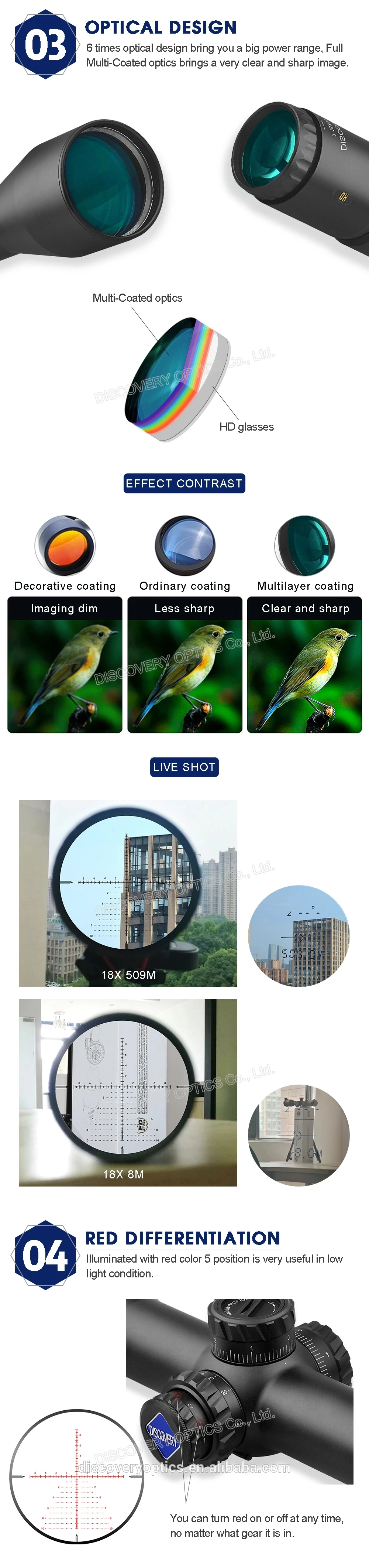 Дискавери винтовочный оптический прицел поддерживает дух «высокого качества, превосходного обслуживания, стремление к развитию» и вера в идеи «качество во-первых, клиент во-первых, и обслуживание во-первых».