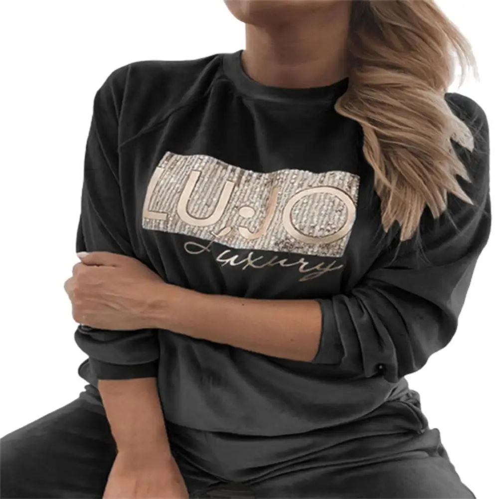 Блузка с длинным рукавом, теплый Топ для женщин, бархатный свитер с блестками и буквенным принтом на осень