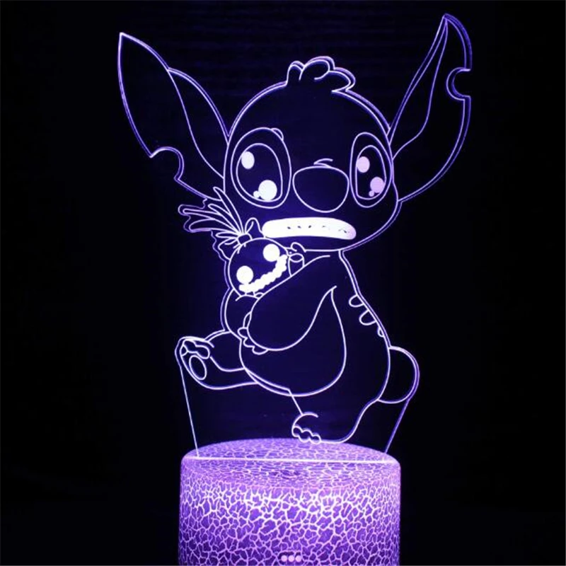 Дисней мультфильм 3D лампа Лило & Ститч СВЕТОДИОДНЫЙ Ночник светильник 3D иллюзия Лампа украшение спальни Lampara красочные настольные лампы Детские подарки JE