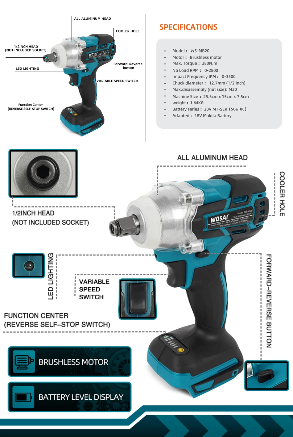 √ Да Совместимость для 18В B Серия литиевая батарея, как, например, BL1850B(197285-8),BL1840B(197270-1),BL1830B(197602-2),BL1430B(197618-7),BL1820B(197487-6);