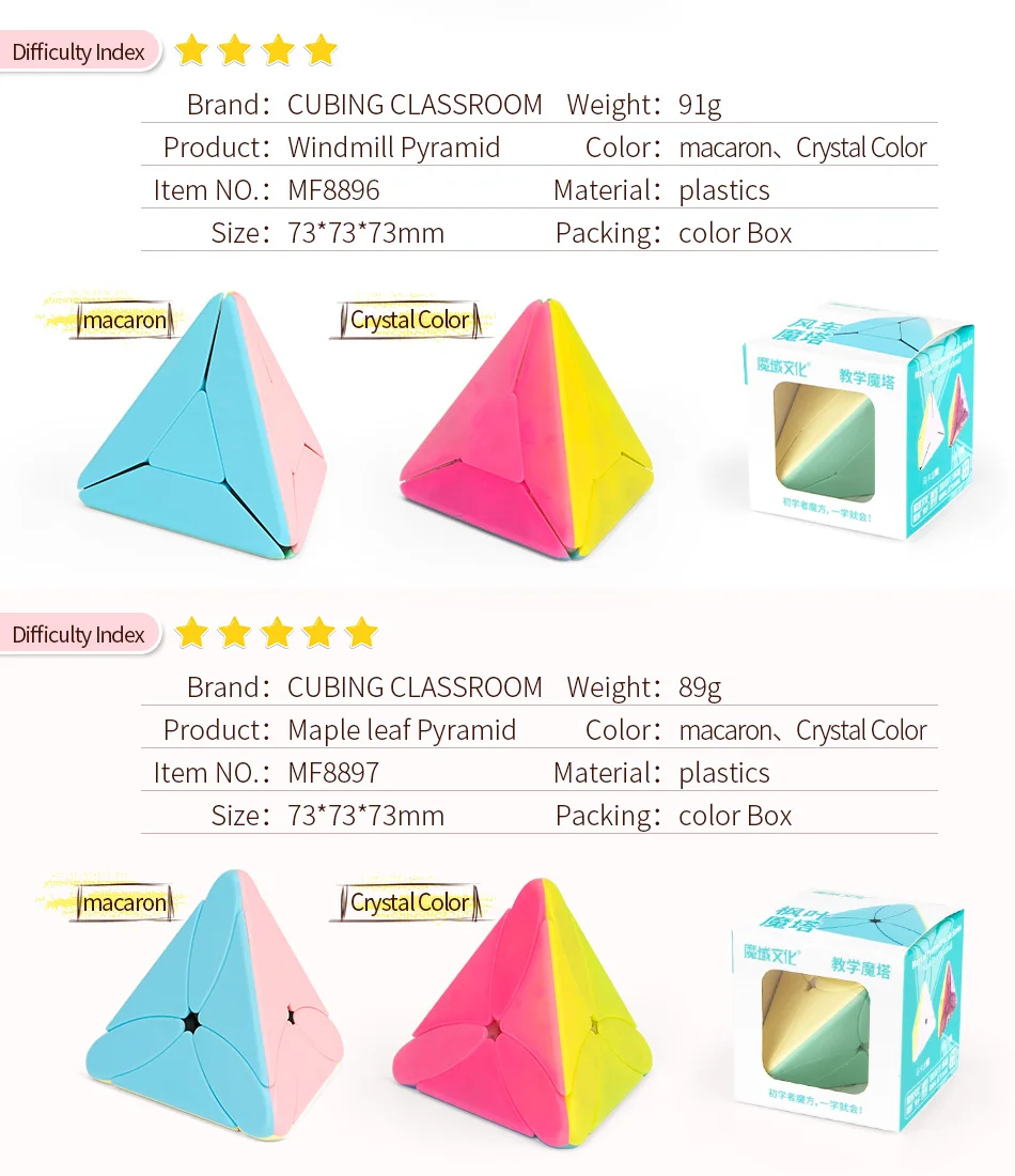 Product:windmill Pyramid Color:Macrron、Crystal ColorItem Model: MF8896 Material:ABSSize:73*73*73mm Packing:Color BoxPackage Content: