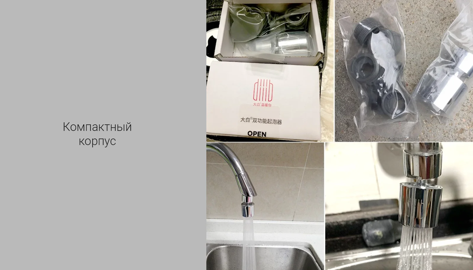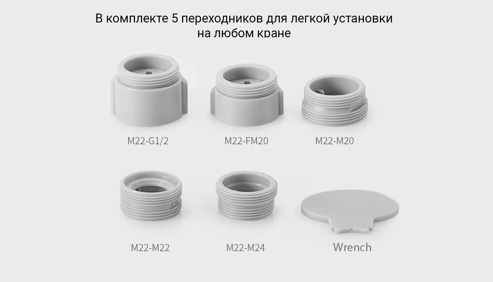 С помощью комплектного ключа и переходников аэратор можно установить на самые разные смесители. Вам даже не нужно вызывать сантехника или разбирать кран, достаточно просто снять комплектную металлическую головку, поставить переходник, накрутить на него аэратор - и вуаля, простой кран внезапно стал многофункциональным!