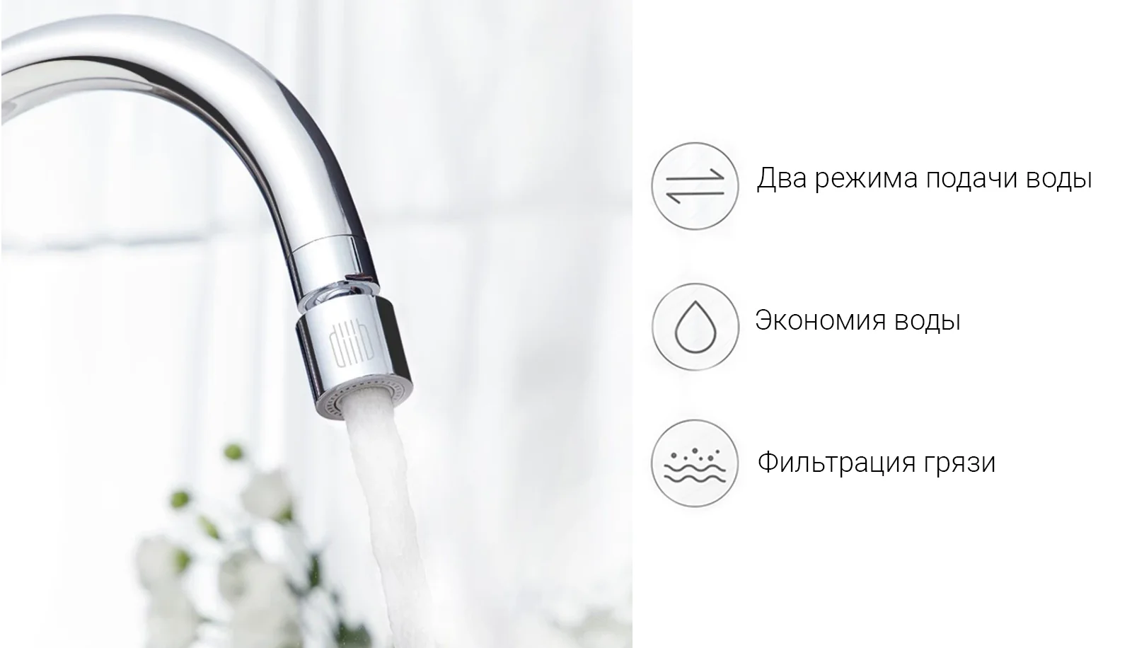 В одном блоке аэратора сочетаются режимы мягкого дождика и жёсткого потока под давлением. При этом для переключения между ними достаточно повернуть головку аэратора, быстро перестраиваясь под разные задачи.