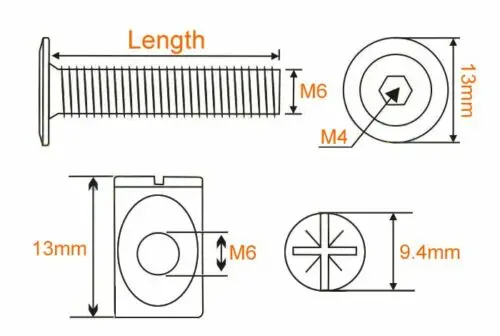 Например:M6 * 90 мм (диаметр резьбы = 6 мм, длина = 90 мм)