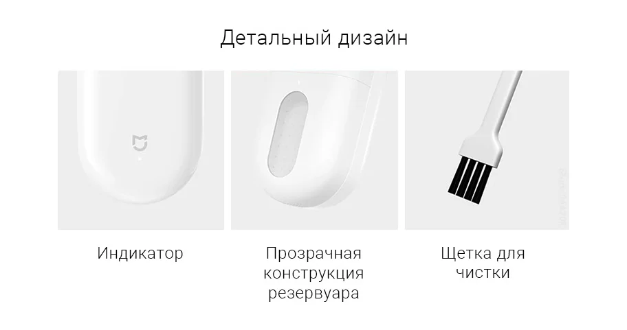 Устройство выполнено в белом цвете. На корпусе находится скрытый индикатор, который напомнит о низком уровне заряда. Резервуар для мусора можно легко вовремя очистить благодаря его прозрачности. В комплекте с машинкой идет щетка для чистки с длинной ручкой.
