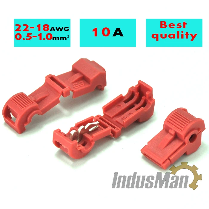 100 шт. посылка с красными соединителями средней длины для проводов 22-10 awg. Быстрые соединения-это быстрый и простой способ соединения в существующий провод. Нет необходимости зачистки проводов. Просто вставьте оба провода в соединение, сложите верхнюю часть с металлической вставкой над проводами и Сожмите плоскогубцами до тех пор, пока крышка не встанет на место. Металлическая вставка в коннекторе предназначена для резки изоляции и подключения двух проводов.