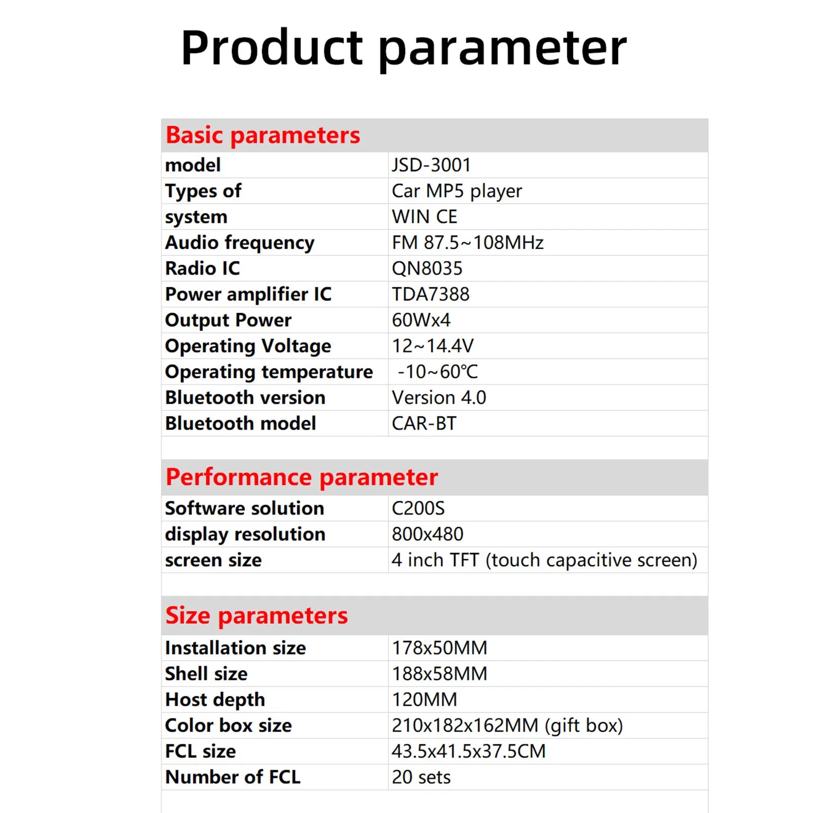 1. 4,1 дюймов HD 1080P на большом экране. Встроенный двухъядерный основной контроллер A20, более высокая скорость работы, может быть вставлен на хост-панель, воспроизведение u-диска.5. Поддержка функции ввода камеры заднего вида, а красочная подсветка кнопки украшена на вашем автомобиле.