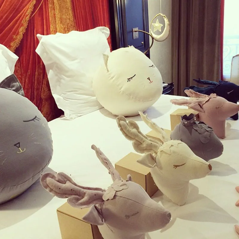 Украшение для детской комнаты в скандинавском стиле, 3D голова животного, овца, слон, кролик, единорог, настенное украшение, мягкая игрушка, художественный подарок на день рождения