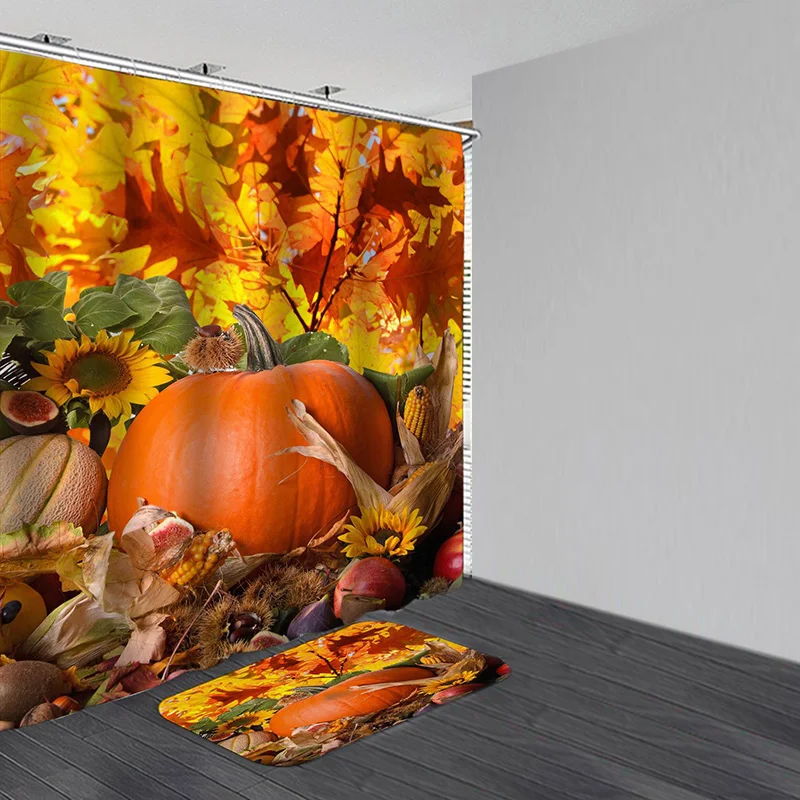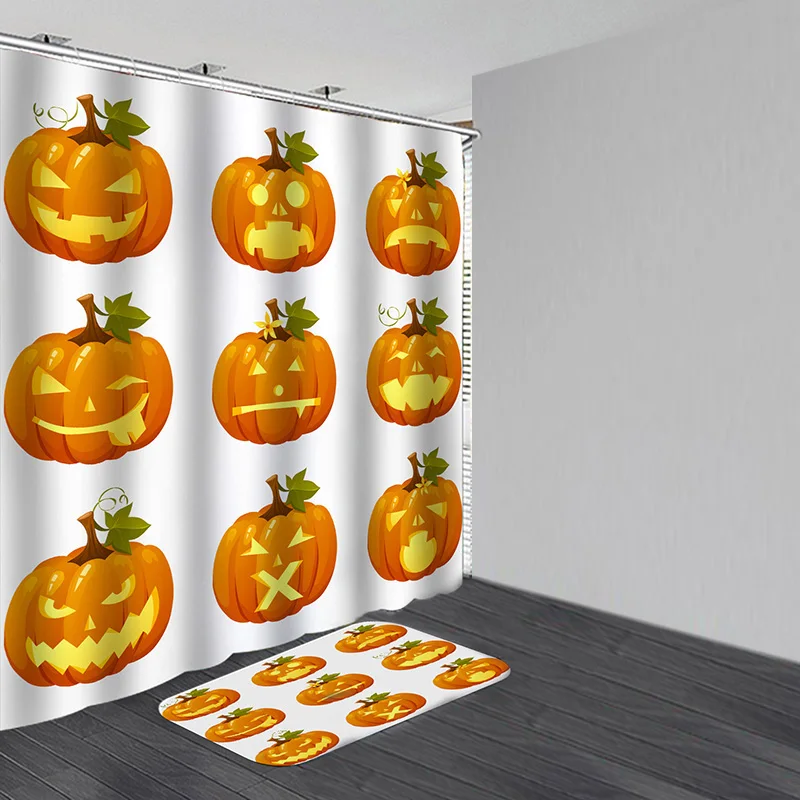 Ванная комната Нескользящая Хэллоуин тыква украшение стиль украшения-коврик для ванной + занавеска для душа