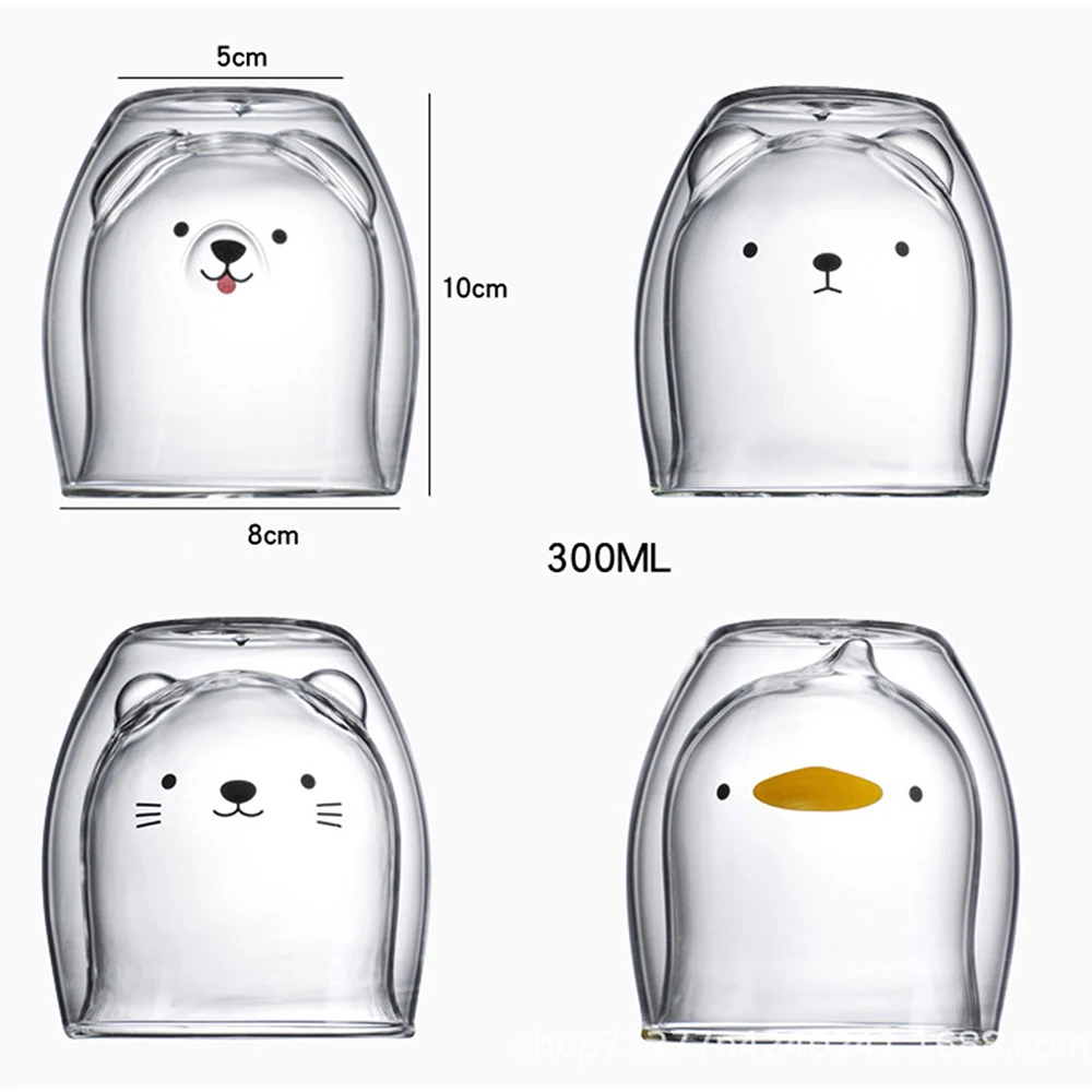 1. Двойные изолированные очки, каждая чашка имеет милое животное, которое держит 230-280 мл воды.
