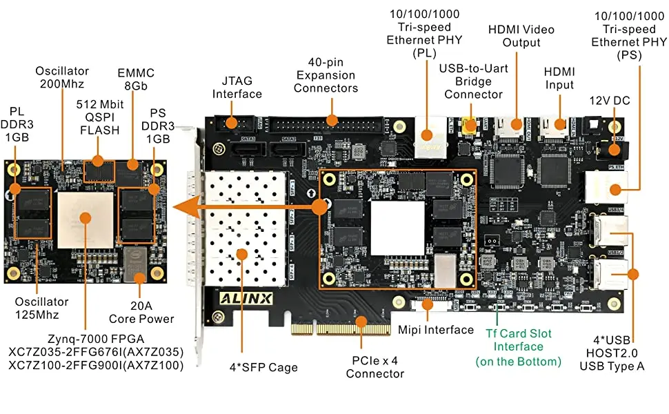 ALINX AX7Z035 бренд Xilinx Zynq-7000 ARM Kintex-7 FPGA SoC макетная плата Zedboard 7035 4 SFP 2 Gigabit PCIex4 HDMI