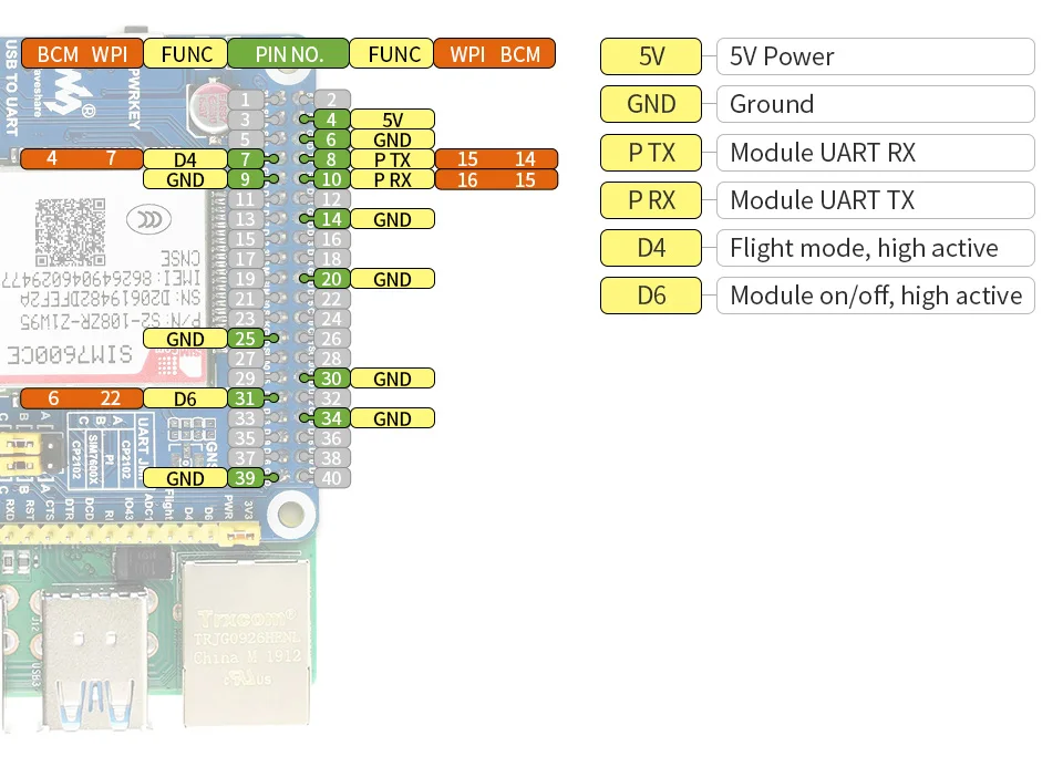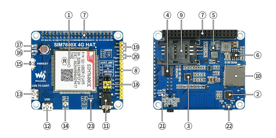 SIM7600CE-CNSE 4G шляпа для Raspberry Pi, поддерживает 4G / 3G / 2G связь, также LBS позиционирование