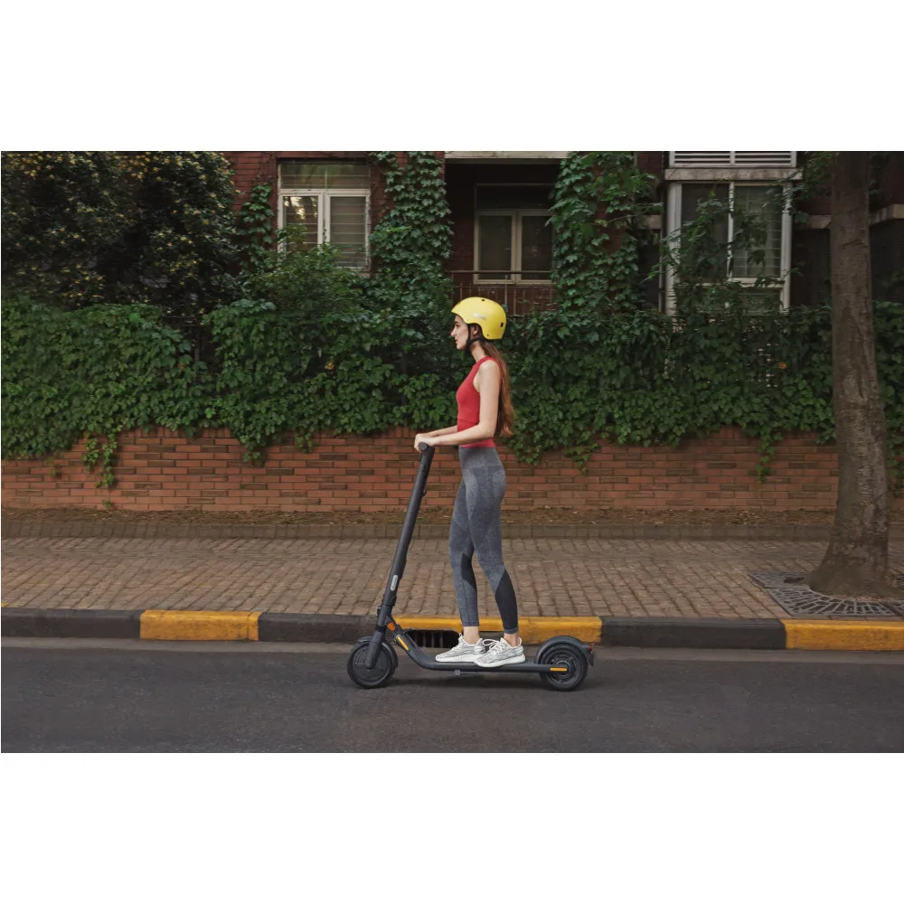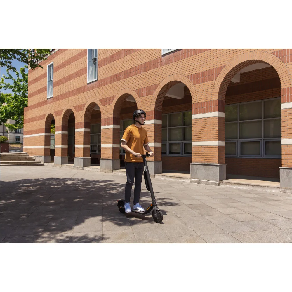 Мотор высокого качества, используемый в электросамокатах Ninebot-Segway, позволяет разгоняться до 28 км/ч, что соответствует мировым стандартам скорости для электробайков. KickScooter E25A также способен преодолевать уклон в 15%.
