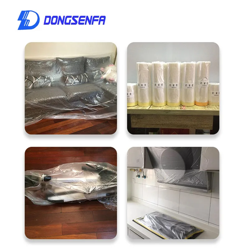 Предварительно приклеенные пластиковые салфетки-это предварительно сложенная полиэтиленовая пленка для тиснения, которая имеет предварительно приклеенные края профессиональной клейкой ленты Защита стен, окон, дверей и шкафов быстро и легко идеально подходит для распыления, ветреных условий или содержать пыль во время шлифовки статически обработанной Маскировочные базовые доски и отделка, Маскирующие окна и стекло и т. д. Материал: лента для маскировки + пластик Размер: 1,8*20 м, 2,4*20 м, 2,8*20 м