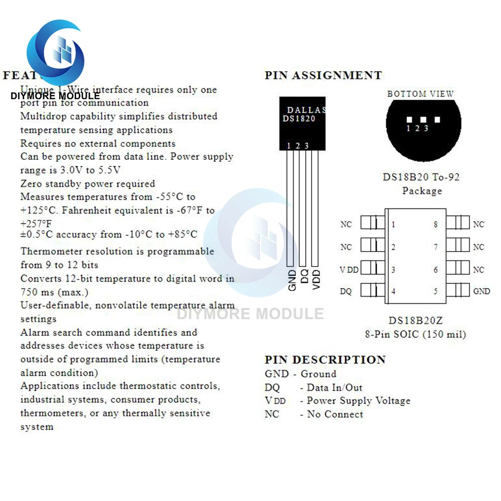 10 шт. цифровой термометр DS18B20 датчик температуры Микросхема 1 провод термометр, программируемое разрешение 3,0-5,5 В для термостатического контроля