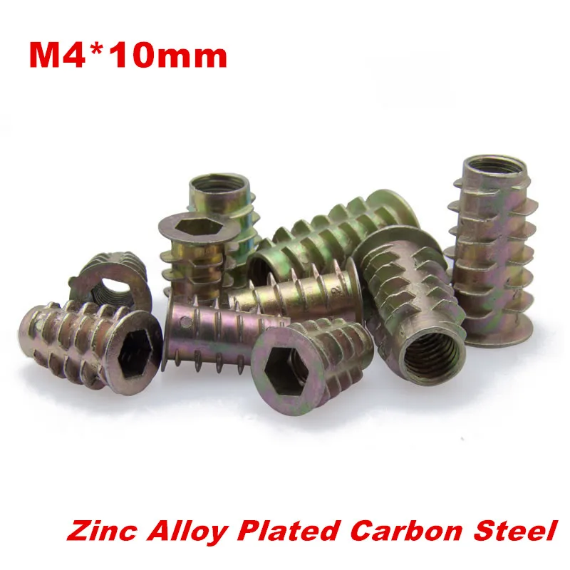 50 шт/100 штM4 * 10 ммРезьба из цинкового сплава для деревянной вставки гайка с фланцевой шестигранной головкой деревообрабатывающие мебельные гайки
