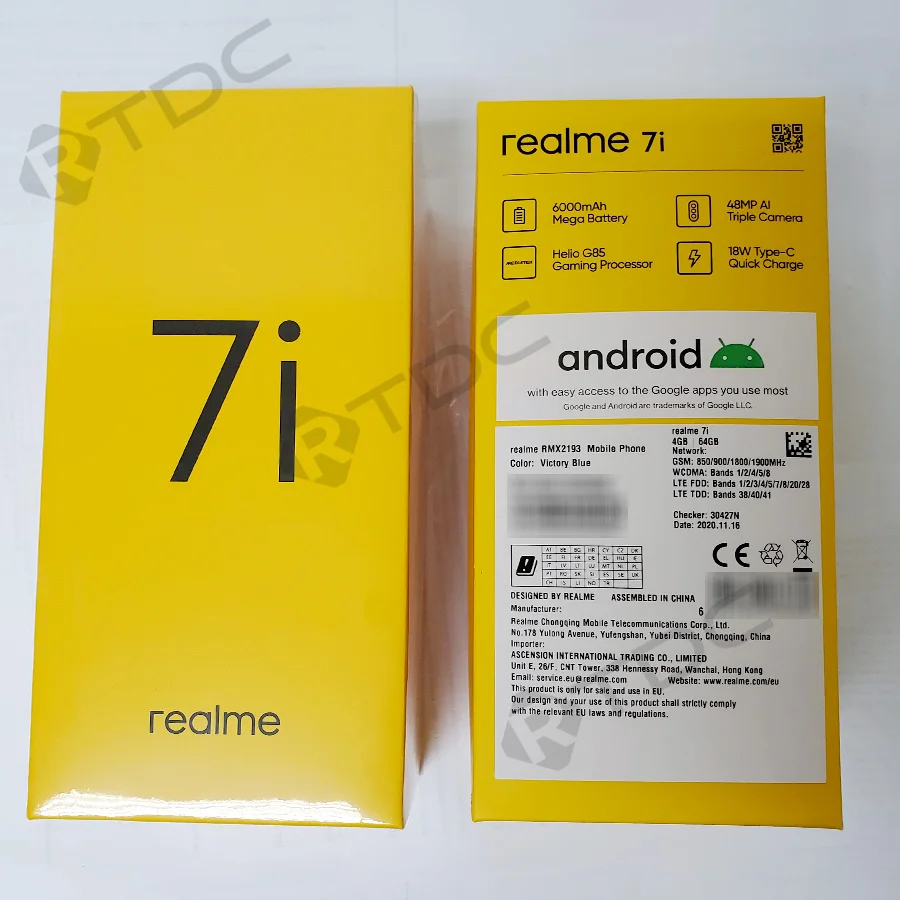 Комплектация:1 телефон realme 7iCell