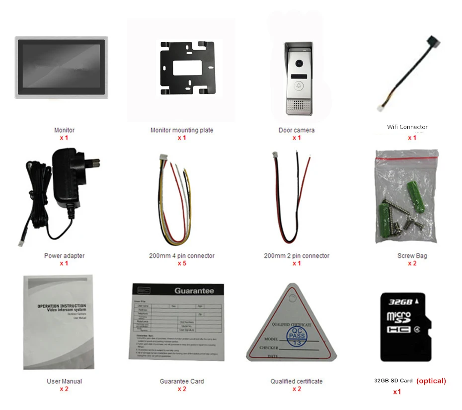 Система видеодомофона может быть установлена с винтовой сумкой и кабелями, которые включают в посылка. Перед установкой внимательно прочитайте руководство пользователя. Дружественная страница работы позволяет легко регулировать громкость разговора/Яркость/Контрастность по мере необходимости.