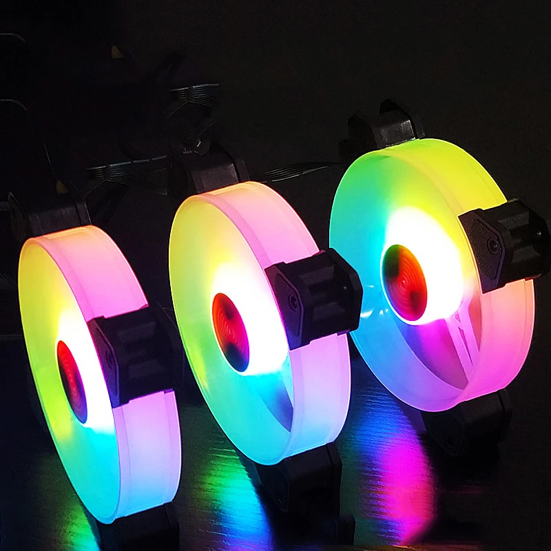 Description Чехол RGB вентиляторы 120 мм ультра-тихие RGB вентиляторы охлаждения шасси с пультом дистанционного управления Регулируемая скорость красочные вентиляторы радиатора кулерОсобенности: