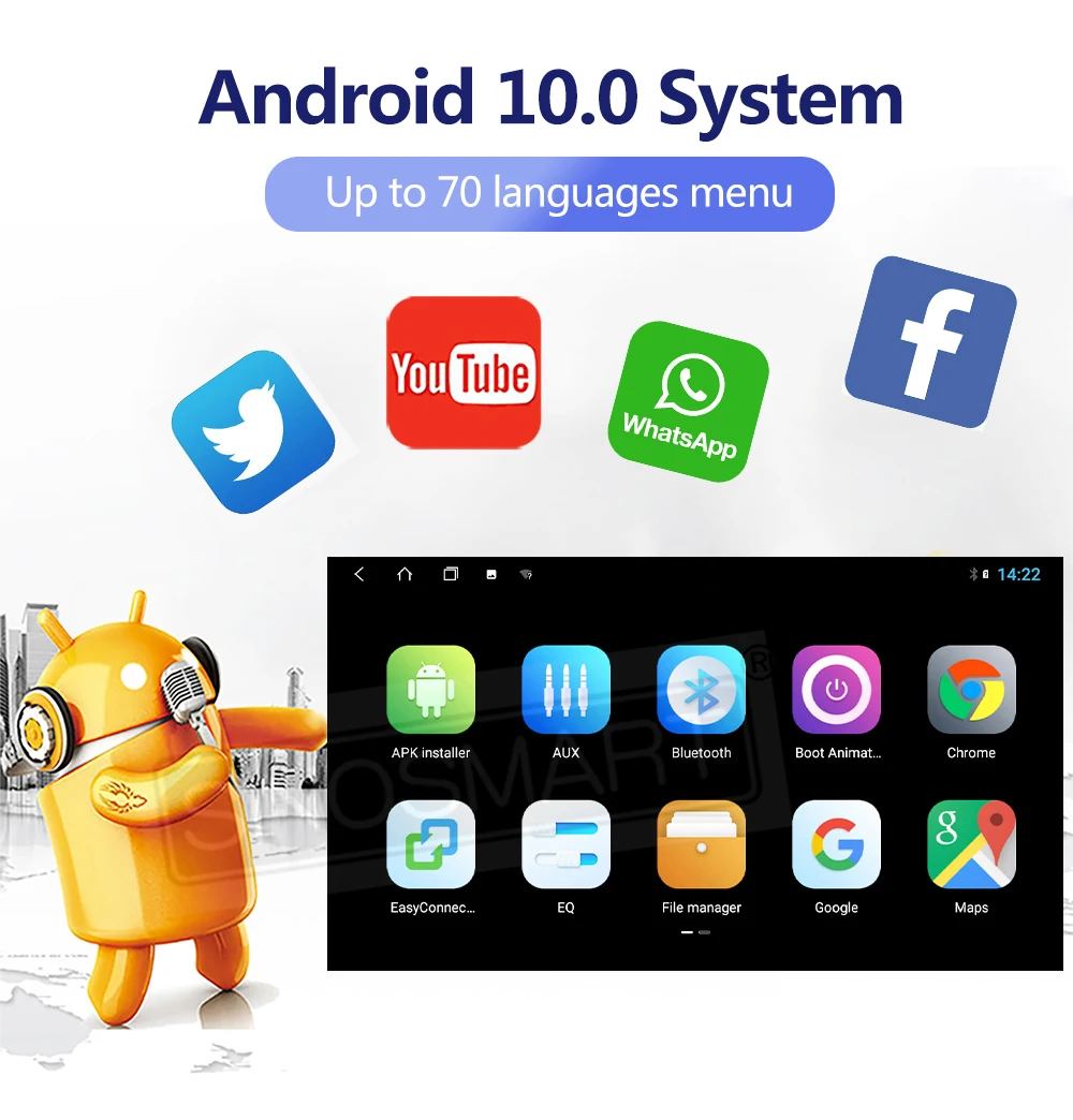 Встроенный GPS, радио с RDS рулевого колеса, Поддержка CAN-BUS кнопки управления, bluetooth для телефонного звонка/музыки и Bluetooth OBD, система контроля давления в шинах, 1080P воспроизведения видео, зеркальное соединение с телефоном. Скачайте и установите приложение, который вам нравится.