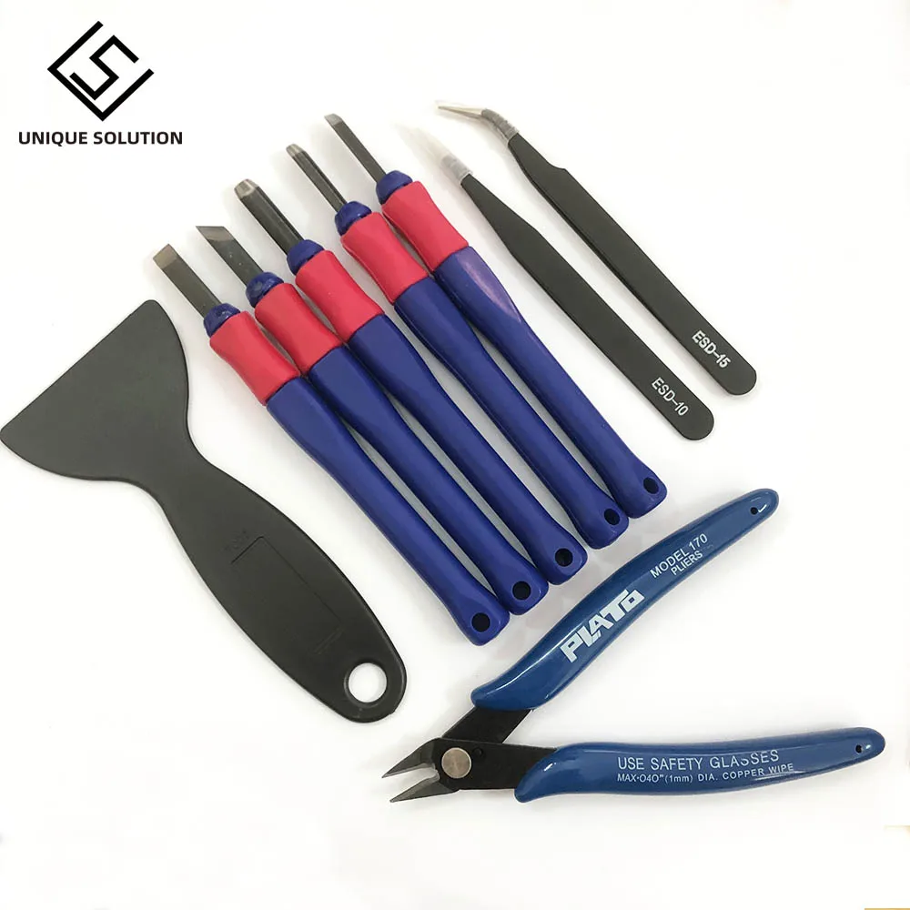 5 универсальных режущих инструментов, используемых для удаления пластиковых и деревянных плотов и опор. Он считается очень полезным для пользователей Afinia, CraftBot, Raise3D, Reprap, MakerBot, UP!, PrintrBot, MakerGear, Solidoodle, Ultimaker и других 3D-принтеров. Используется для аккуратного удаления плота и опор ABS и PLA. 5 форм для работы на самых разных углах и изгибах. Работает со всеми моделями 3D принтеров ABS и PLA пластика, а также со многими другими распространенными материалами, используемыми для 3d-печати. Долговечные лезвия из закаленной стали. Удобная ручка захвата.