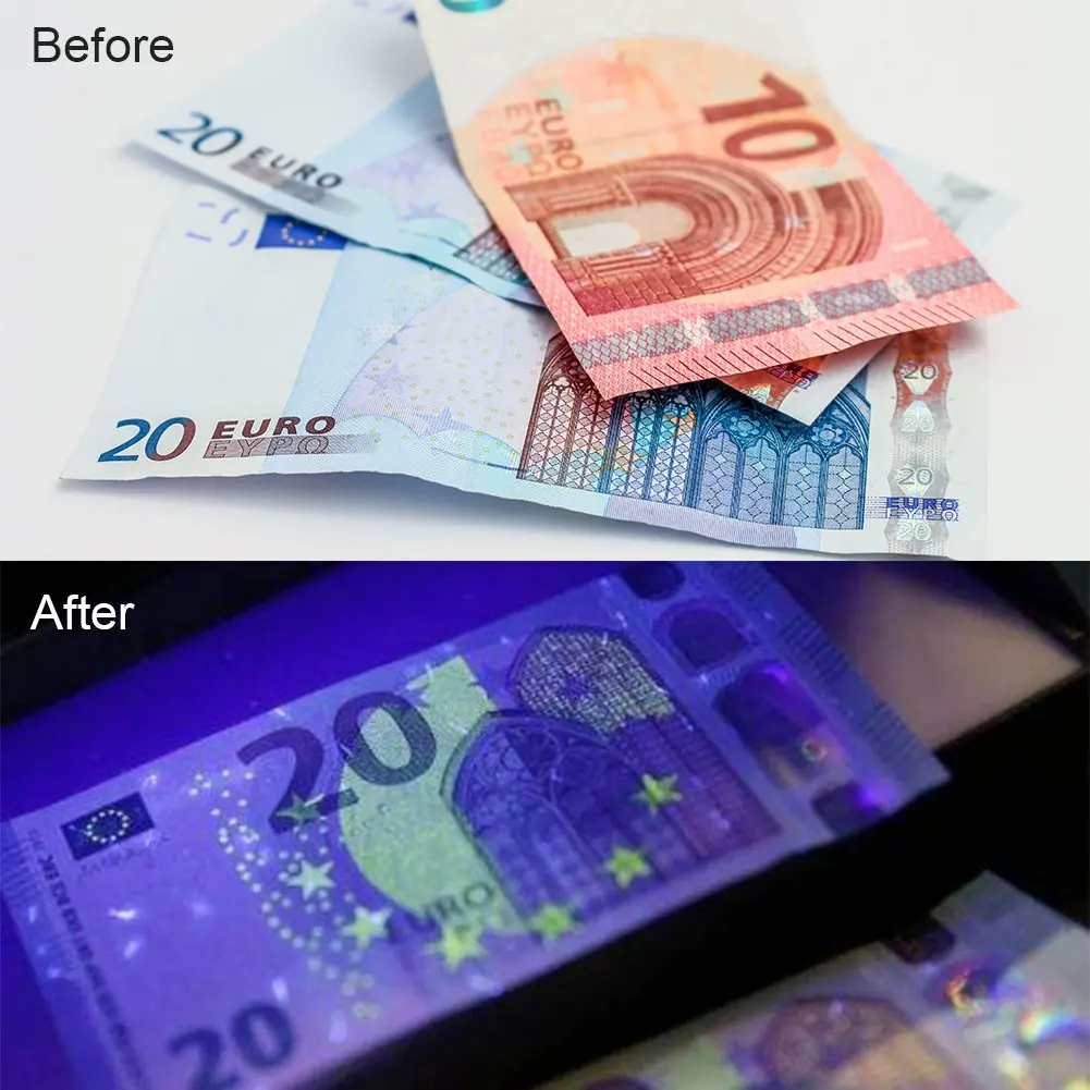 【Практический жизненный функционал 】этот фонарик черного света может использоваться для идентификации аутентичности, фальшивой валюты, водительских прав, кредитных карт, чеков, официальных удостоверений личности, паспортов, идеально подходит для обнаружения сухих пятен собаки, кошки, грызуны и неблагоприятные пятна, которые не могли видеть невооруженным глазом.
