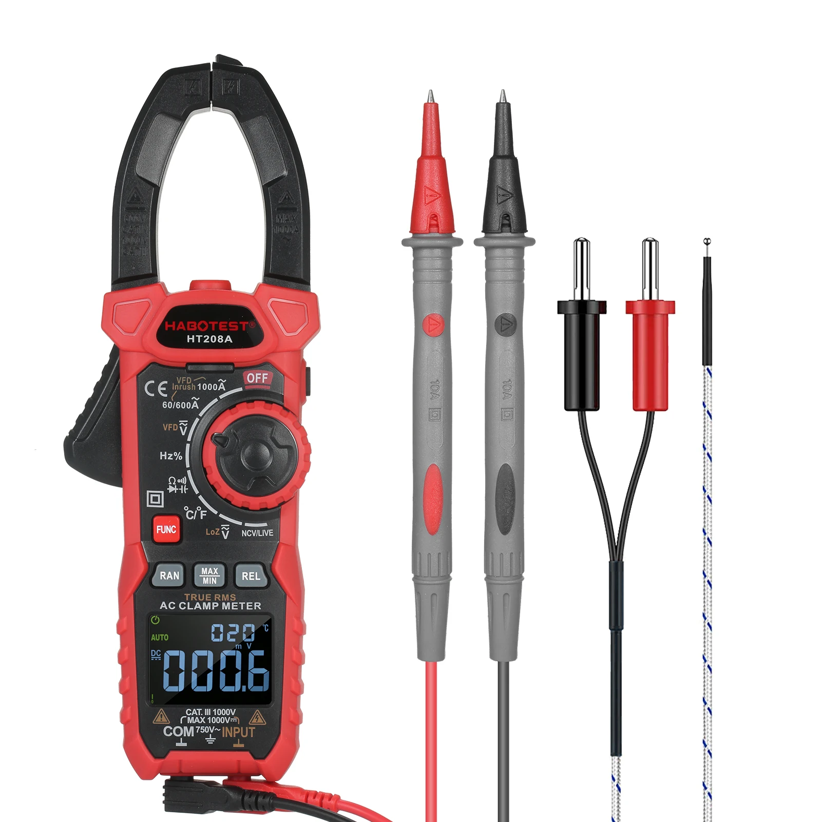 Мультиметр с зажимом: измеряет входной ток, ток/напряжение VFD, переменный ток, напряжение переменного/постоянного тока, частоту, коэффициент работы, сопротивление, непрерывность, диод, емкость, температуру, бесконтактное Обнаружение напряжения переменного тока (NCV) и обнаружение в режиме реального времени.