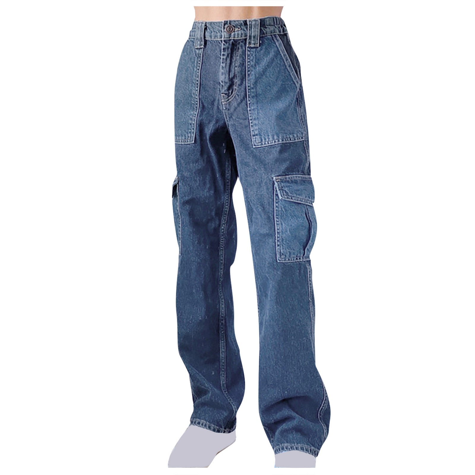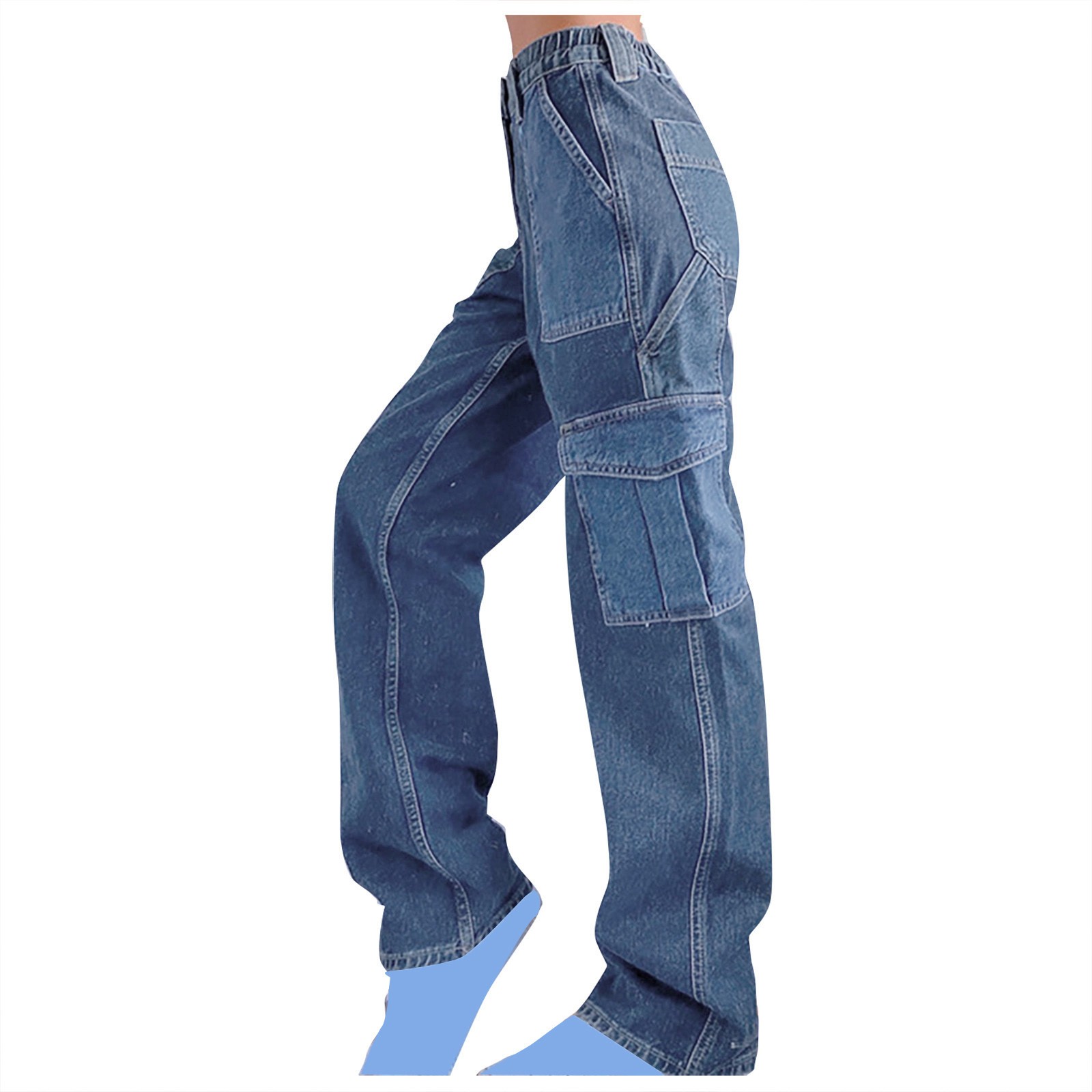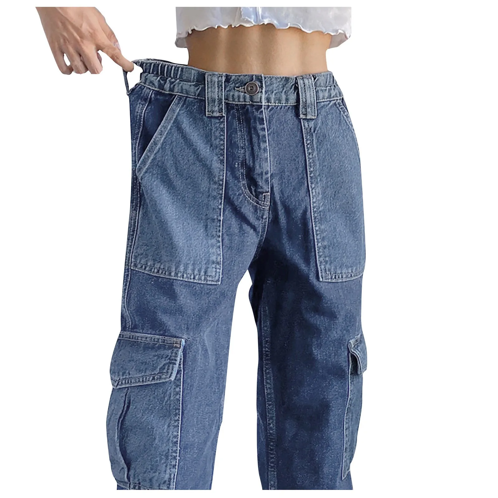 Женские брюки с высокой посадкой, потертые темные джинсы с несколькими карманами