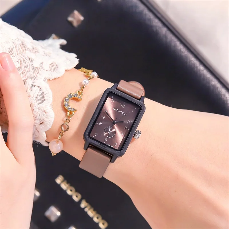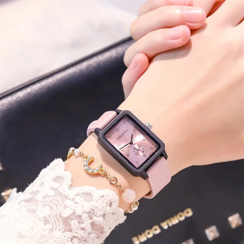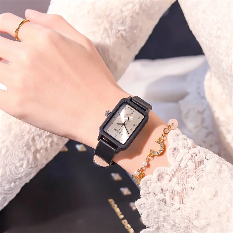 Простые женские модные черные часы винтажные кожаные женские кварцевые часы Ретро стиль Прямоугольные женские наручные часы Montre Femme