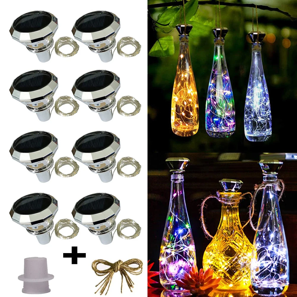 8 упаковок в форме винной бутылки на солнечной батарее светильники-пробка, 2 м 20 светодиодов Солнечная гирлянда сказочные огни Открытый водонепроницаемый Солнечный Алмазный флакон огни для свадьбы праздника сада патио Путь Открытый Декор лампы