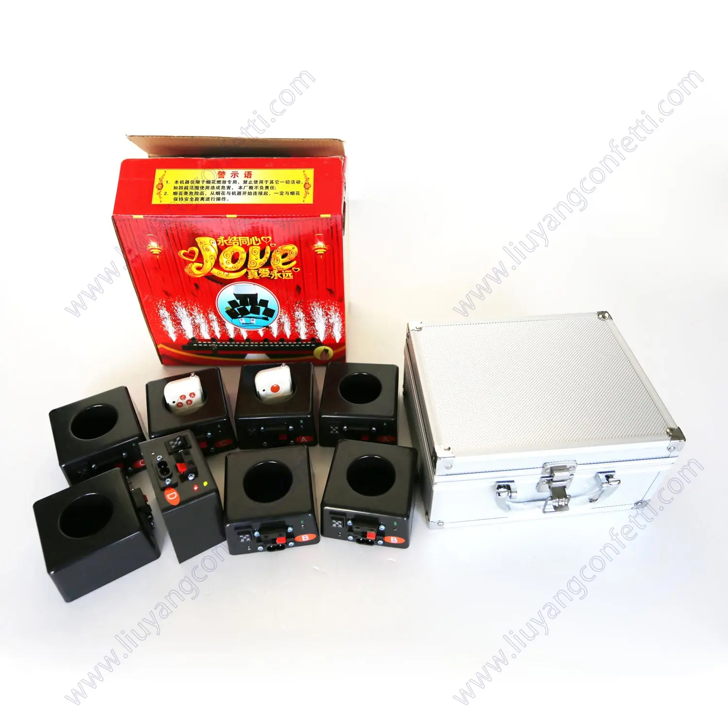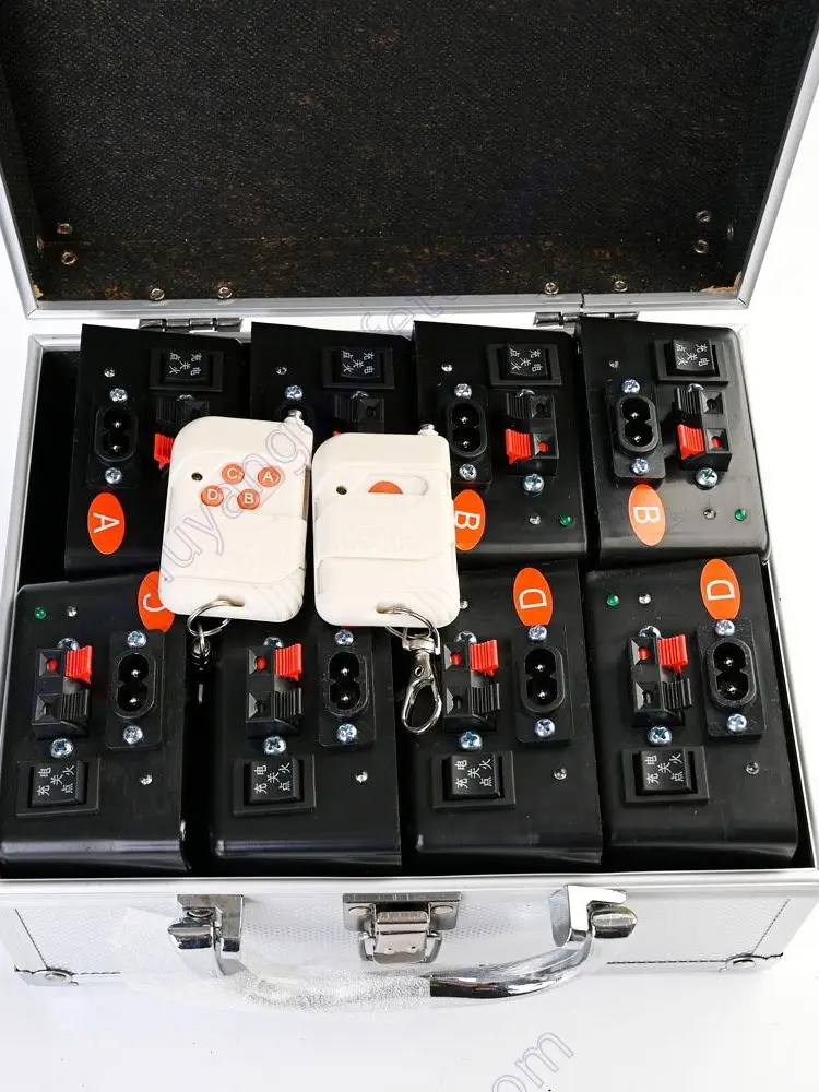 Очень маленькие системы дистанционного управления для сценических фонтанов. Использует небольшой Аккумулятор AA, наиболее удобный для свадебных шоу. С функцией обучения, может запускать 8 единиц вместе или один за другим. Размер изделия: 8,5 см x 8,5 см x 5,3 см