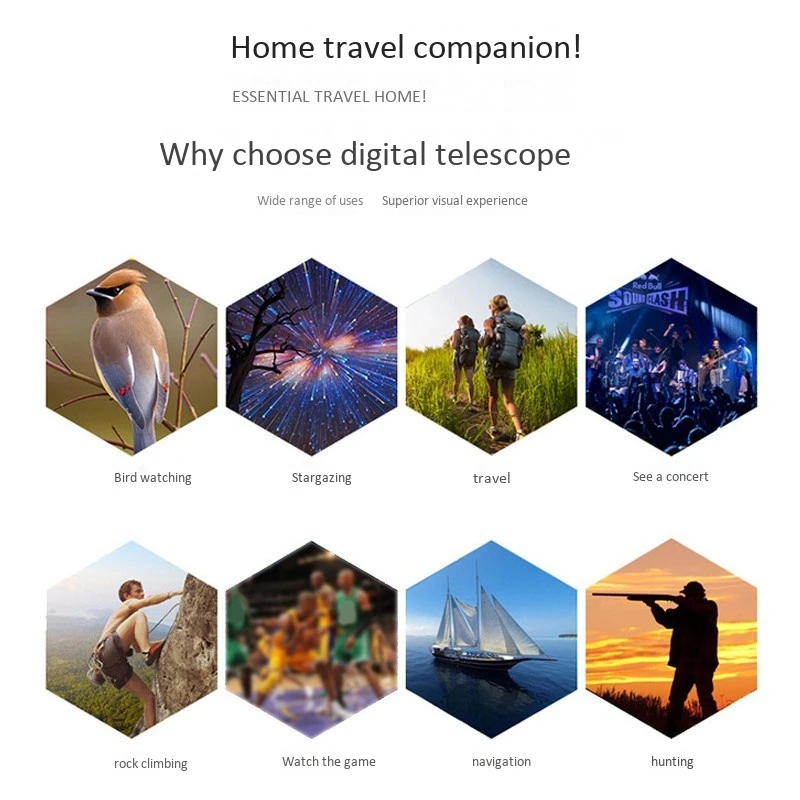 Широкоугольный объектив, 1080P зум объектив высокой четкости, встроенный телескоп и функция съемки в одном, металлический кронштейн интерфейс в нижней части кронштейна красивый и прочный.