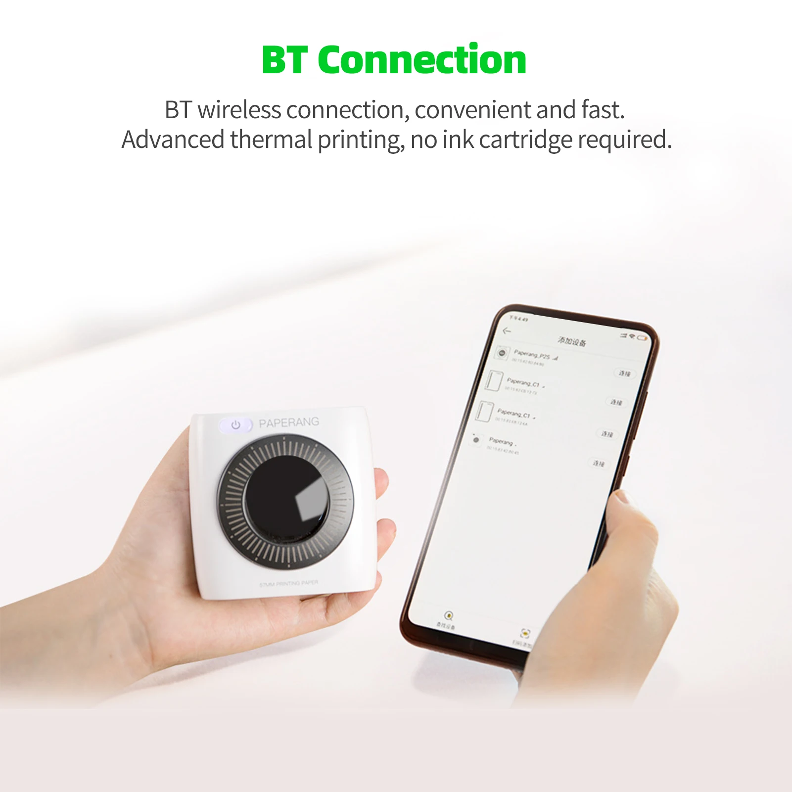 Карманный принтер:Маленький и легкий, легко носить с собой. Ширина бумаги 57 мм, разрешение 300 точек/дюйм, гладкая и чистая печать, удовлетворяет ваши различные потребности в печати.