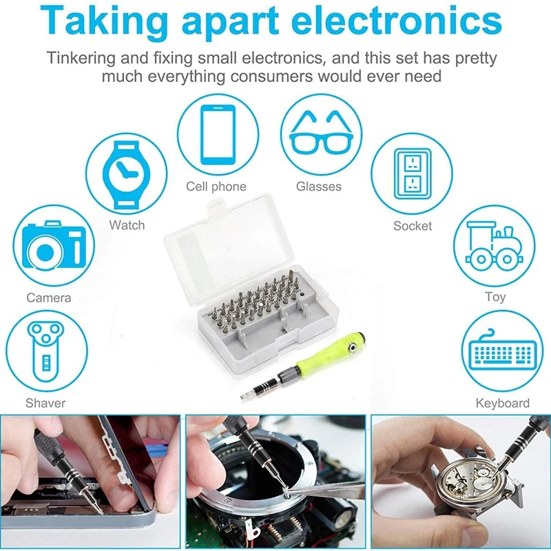 [Хороший магнитный и Удлинительный стержень] Мульти-магнитный драйвер позволяет легко зафиксировать бит и вытягивать винты. С t-гаечным отверстием для преобразования и удлинительным стержнем, эргономичный дизайн и обеспечивает оптимальную передачу силы, что решает, что этот набор инструментов для ремонта будет доступен для узких углов. Это другая причина, по которой вы можете выбрать этот товар.