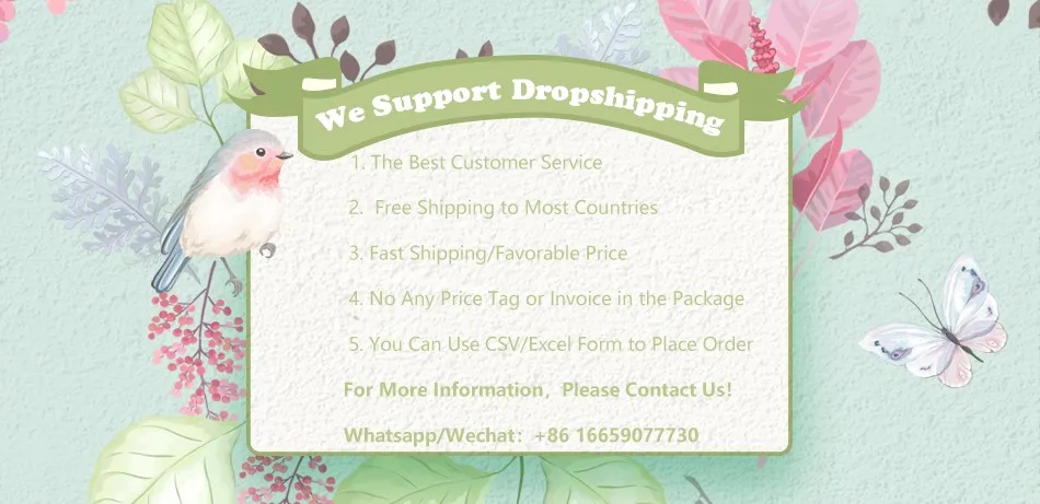 Если вам нравится наш магазин. Пожалуйста, добавьте наш магазин в ваши любимые магазины, нажмите"Следуй", Тогда вы можете получить нашу информацию о новом прибытии и скидках вовремя, Приветствуем дропшиппинг и оптовую продажу! Свяжитесь с нашей службой поддержки клиентов, чтобы получить больше скидок!
