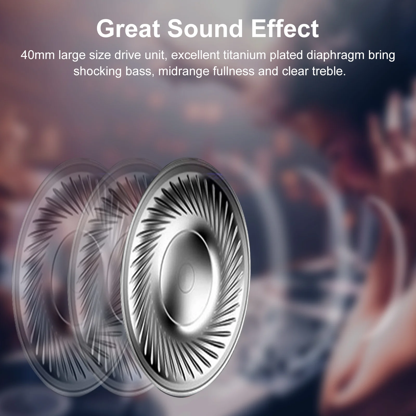 40 мм большой размер привода, отличная титановая диафрагма приносит шокирующие басы, среднюю полноту и четкие высокие частоты.
