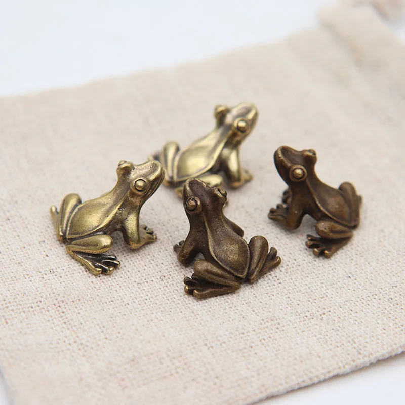 Медные маленькие лягушки, миниатюрные фигурки, винтажная ручная работа, медные животные, жабы, настольные украшения, домашние украшения, ремесла, чай, домашнее животное