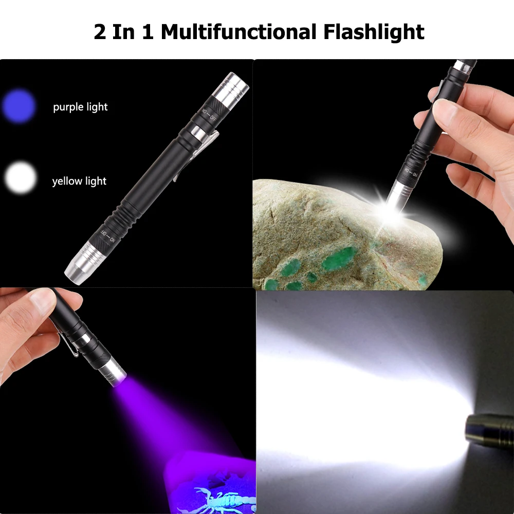 2 в 1: УФ-фонарик/обычный фонарик.