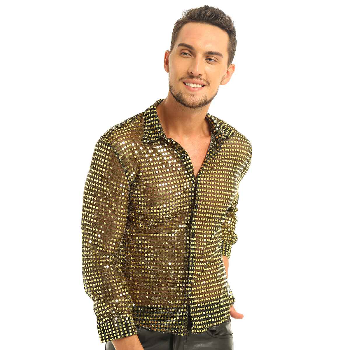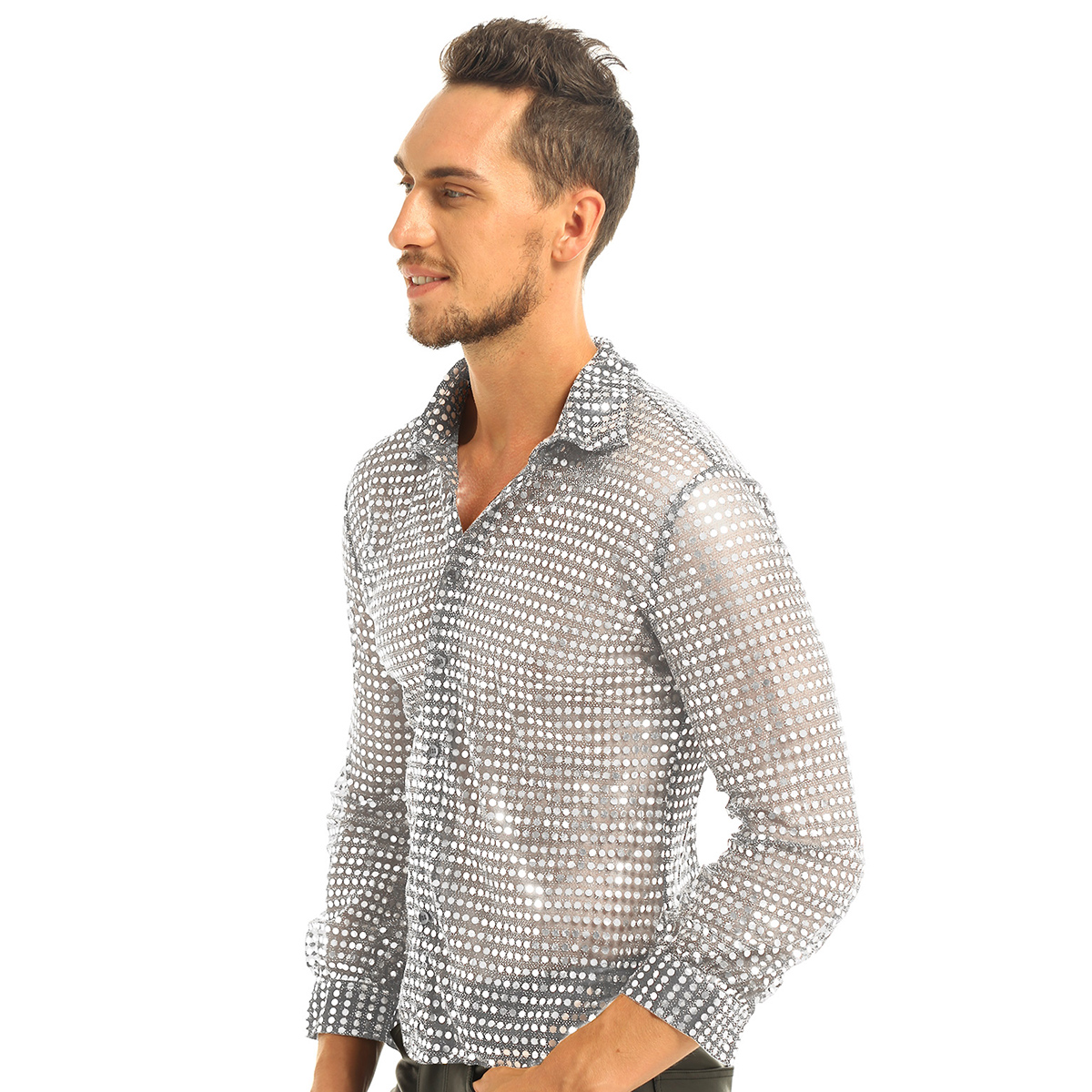 Мужская Клубная одежда; Топы; Прозрачная сетка с блестками.