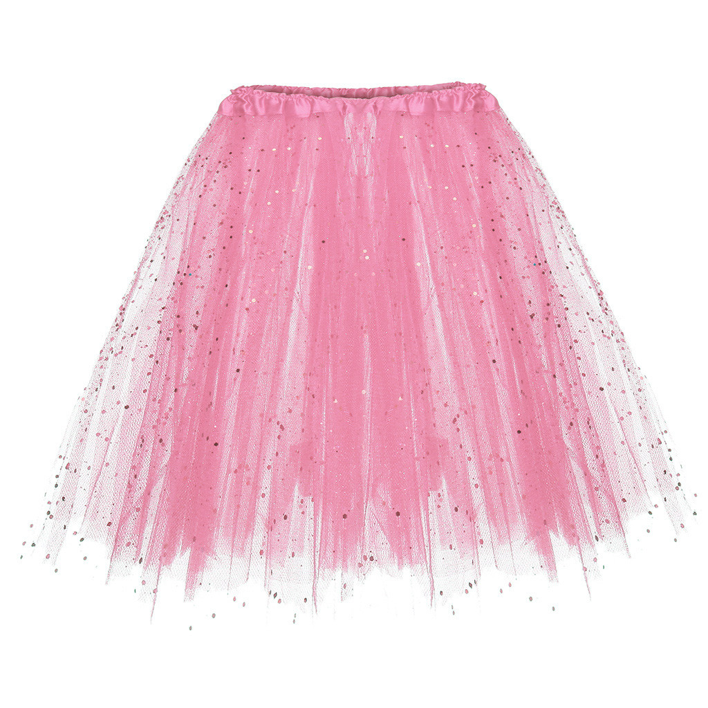 Womens Paillette Elastic 3 Layered Short Skirt Adult Tutu Dancing Skirt