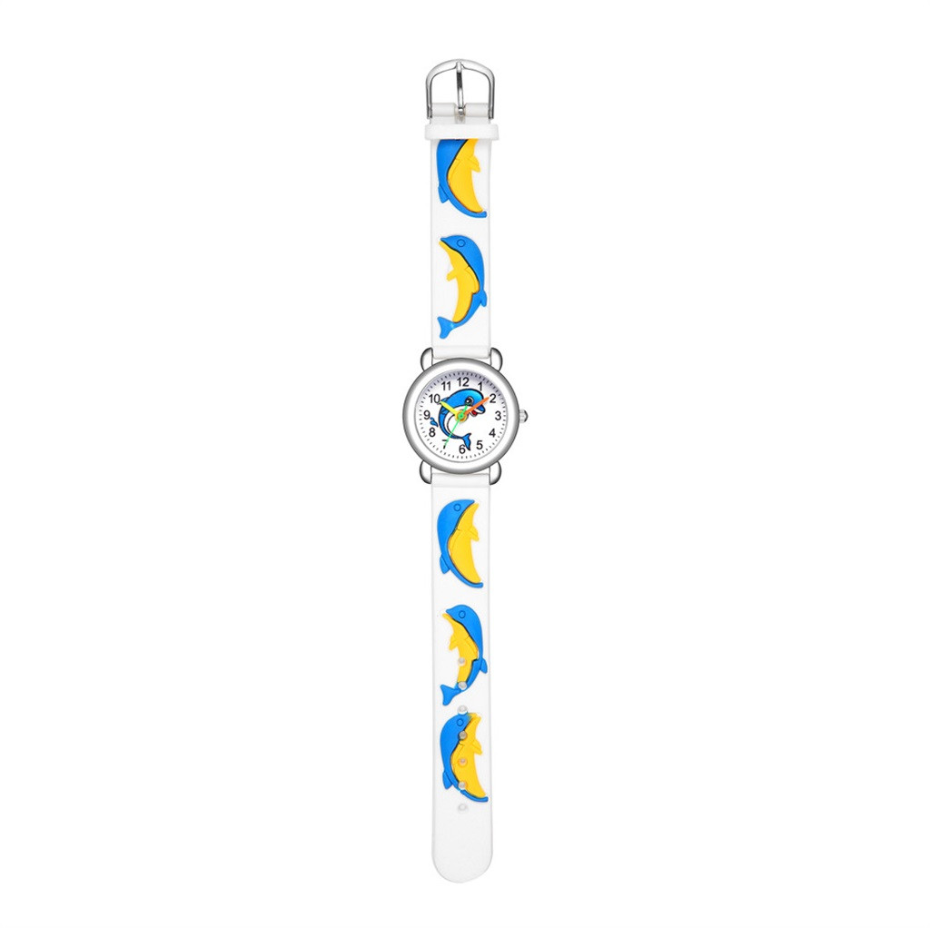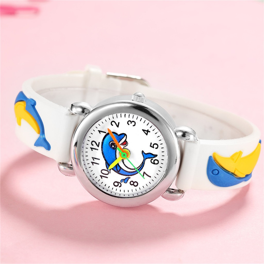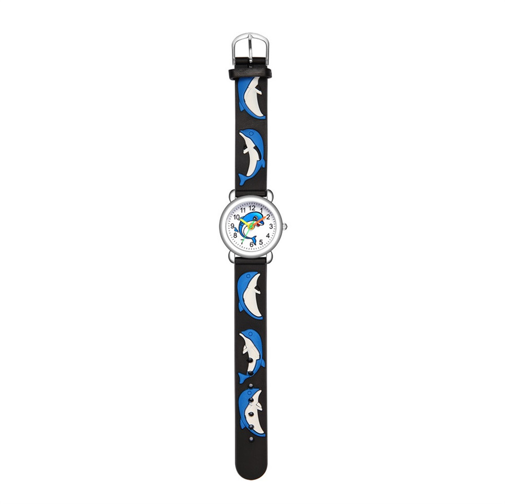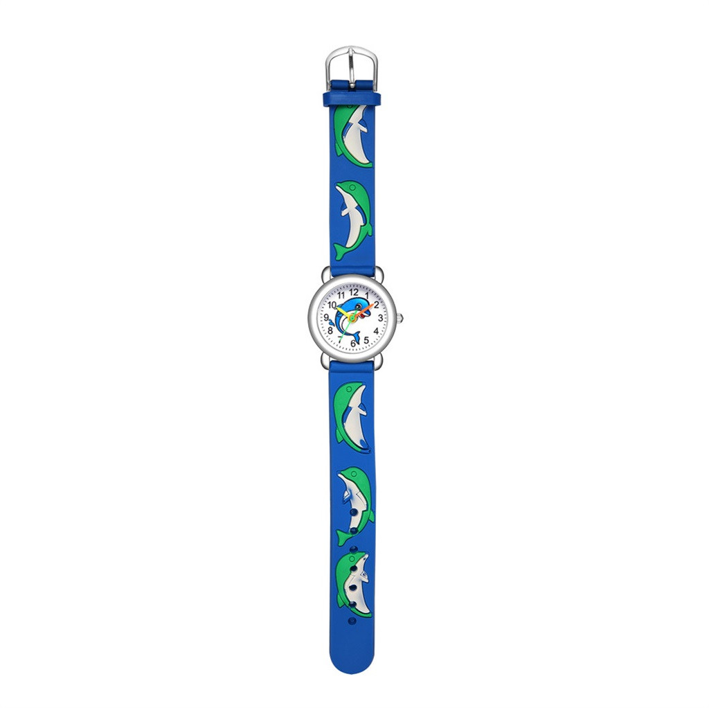Детские часы с милым мультяшным рисунком, циферблат, мультяшный дельфин, полимерный ремешок, Детские Кварцевые часы с указкой для мальчиков и девочек, подарок, хит продаж 05 *