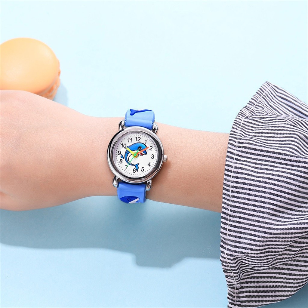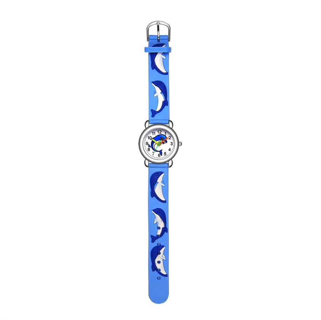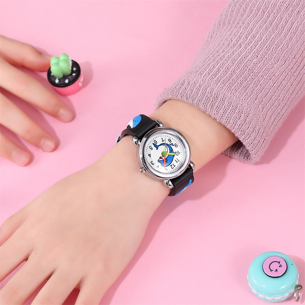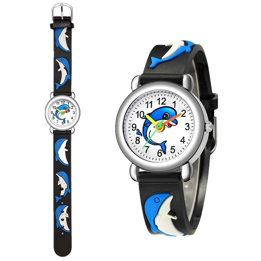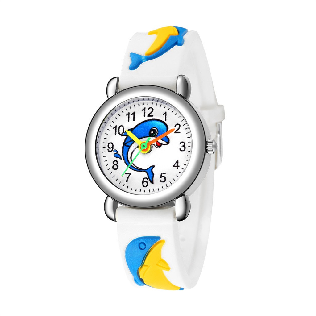 Детские часы с милым мультяшным рисунком, циферблат, мультяшный дельфин, полимерный ремешок, Детские Кварцевые часы с указкой для мальчиков и девочек, подарок, хит продаж 05 *