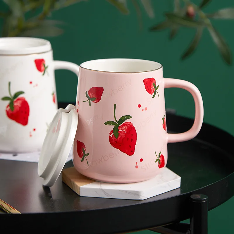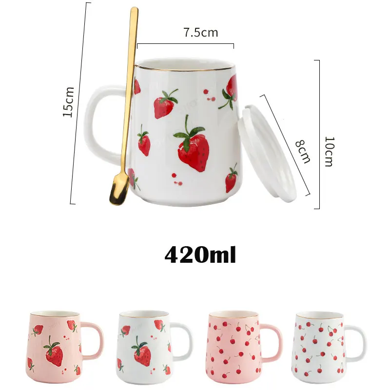Тип: милая вишневая Клубничная кружка с крышкой и золотой ложкой