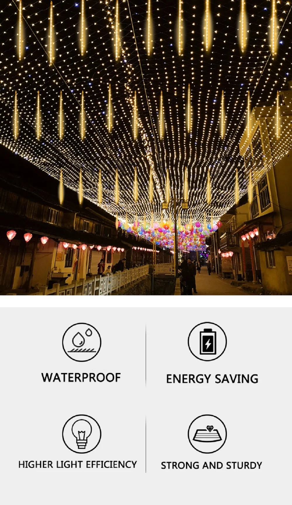 30 см, 50 см, 80 см, 8 трубок, метеоритный дождь, светодиодные гирлянды, душевая гирлянда, наружное водонепроницаемое Рождественское украшение для дома, дерева