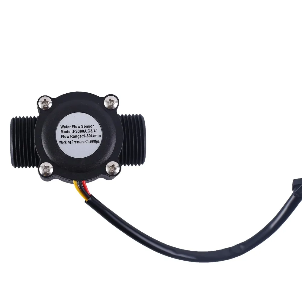 1. Описание: Это расходомер для измерения расхода воды. 2. Особенности: 1>. Высокая точность 2>. Высокое сопротивление давлению 3>. Стандартный Размер 3. Параметры: 1>. Модель: FS300A 2>. Спецификация: G3/4 3>. Работа Напряжение AC/DC 4,5 V ~ 24V 4> Рабочий ток: 20 мА 5>. Импульсного потока Характеристика: F = 5,5 * Q-3;Q = л/мин 6>. Точность: 3% 7>. Выходной ток:<10 мА 8>. Диапазон потока: 1-60 л/мин 9>. Окружающая среда давления воды:<1.2MPa 10>. Рабочая температура: 0 ℃ ~ 80 ℃ 11>. Рабочая влажность: 5% ~ 90% относительной влажности 12>. Размер: 66*42*38 мм 13>. Длина провода: 150 мм 4. Функция: 1>. Рассчитать поток через датчик жидкости, получив выходную частоту от датчика. 5. Определение штифта: 1>. Красный провод: VCC. Он используется для подключения к положительному входному напряжению работы. 2>. Желтый провод: выход сигнала. 3>. Черный провод: GND. Используется для подключения к отрицательному входному напряжению. 6. Посылка: 1>.1 шт. FS300A G3/4 "датчик расхода воды