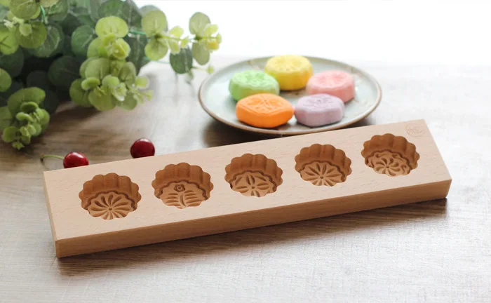 XUNZHE Kitchen Baking Mold 5 Flower Patter Wood Baking Molds Moon Cakes Model Rice Cakes Cookies Muffins Mold Make Pastry Helper